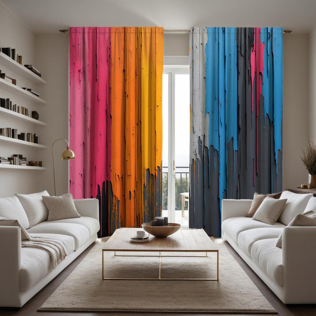 2 st HD färgstänkmålad trälamell dekorativ gardin Färgsystem digitaltryckt gardin Heminredningsstil Dekor