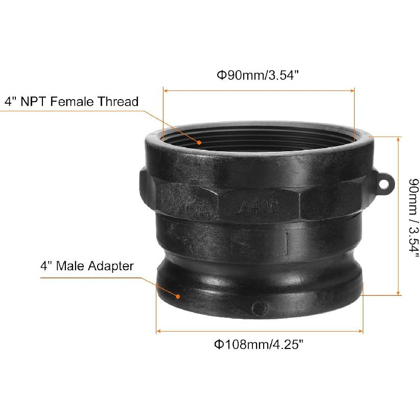 PATIKIL Poly Cam Lock Fittings, Part a 4" Male Adapter x 4" Female NPT Thread Cam Groove Hose Fittings Polypropylene Cam Lock Fittings, Black