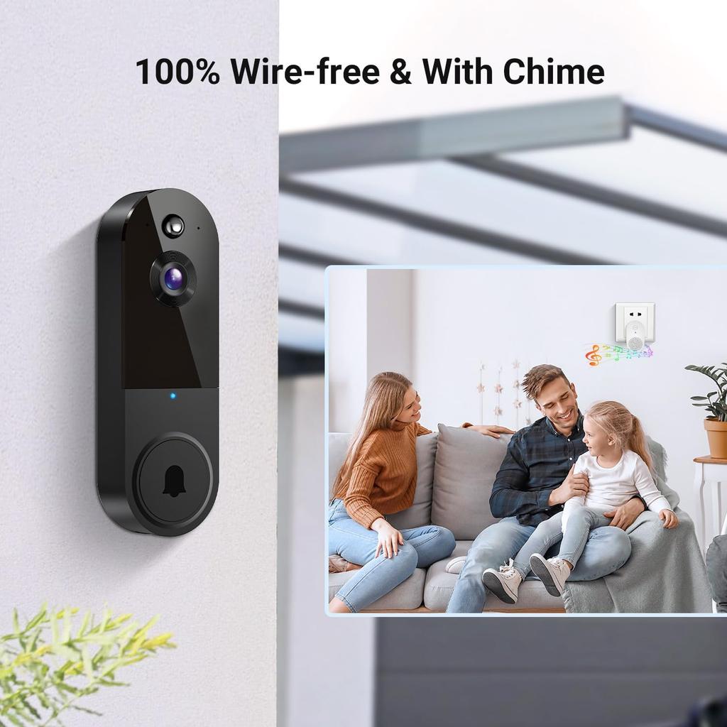 1080P Wireless Video Doorbell Camera, Night Vision, Intelligent AI Detection, Two-Way Audio, 2.4GHz Wi-Fi Support, Chime Included, Battery Powered,