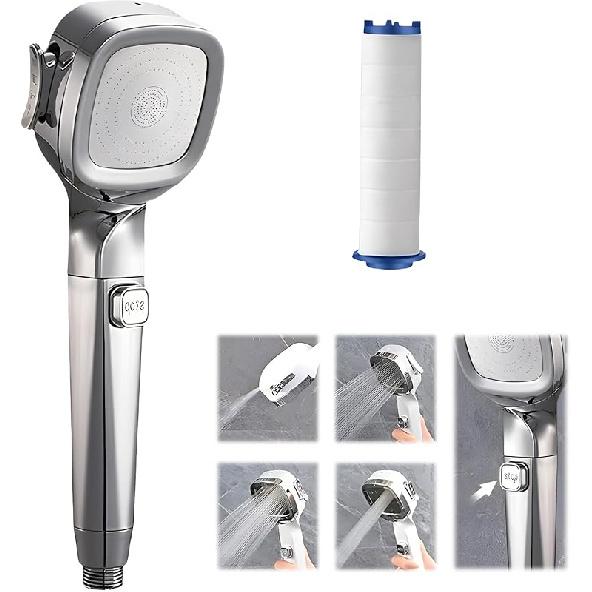 4-mode Handheld Pressurized Shower Head with Pause Switch, Anti-clog Nozzles, Built-in Power Wash to Clean Tub, Tile & Pets, Easy Installation, Hose
