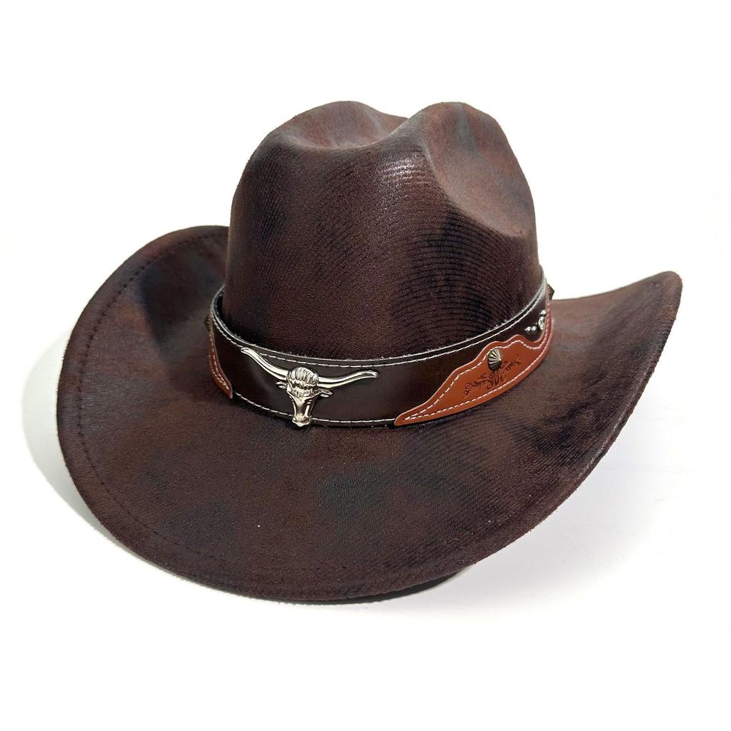 Dayan Western Cowboy Hat Cow Head Belt Rivet Jazz Hat Men'S And Women'S Spring, Summer And Autumn Outdoor Travel Sunshade And Sun Protection Hat