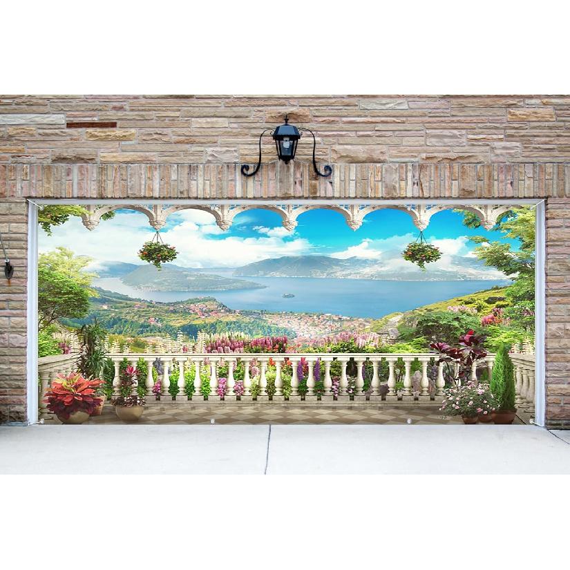 WIDE APPLICATION: This spring landscape garage cover is suitable for your garage door decorations, can be used for spring outdoor event decorations, spring themed photo shoot backdrops, birthday party events, stage performances, etc. The large garage door decorations are also suitable for decorating garage doors, walls, windows, and porches. Create a warm, beautiful backdrop for your spring party with this large mountain floral garage door banner that is sure to impress your guests