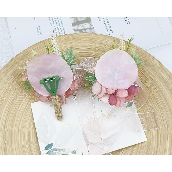 MAFELOE Wrist Corsage and Boutonniere Set Artificial Rose Flowers Accessories for Groom Bride Groomsmen Bridesmaids Wedding Party Prom Suit- Creamy