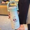 Tecknad Söt Barn Termosflaska 316 Rostfritt Stål Sugrör Vattenflaska Bärbar Dubbel Drickande Termisk Vattenkopp för Studenter