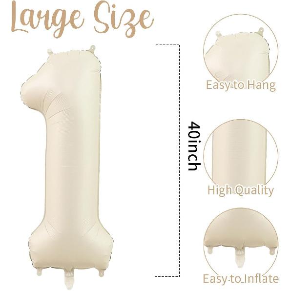 40 Inch Cream White 1 Balloon Numbers, Large Number 1 Balloon Foil Helium Number Balloons, Big 1st Foil Birthday Balloons for Boys Girls 1st Birthday