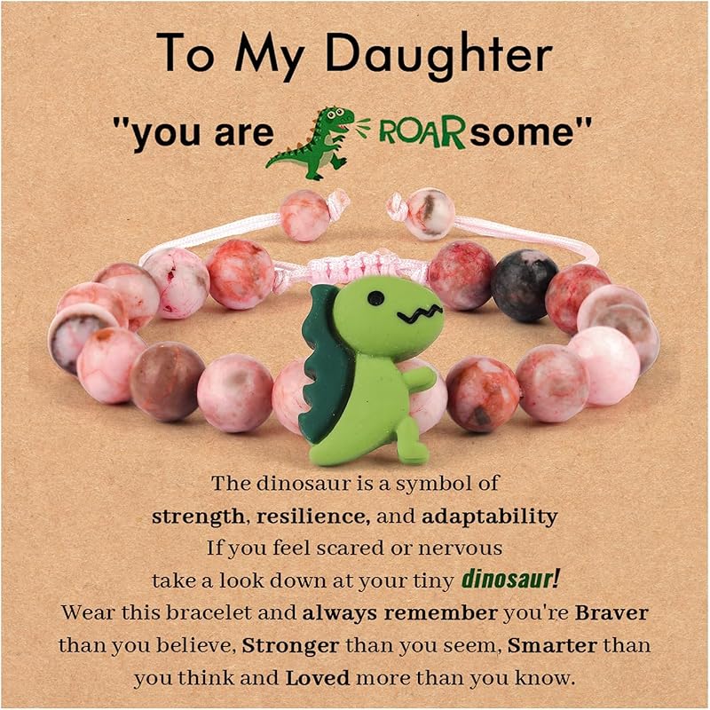 COLORFUL BLING Dinosaur Bracelet for Son/Grandson on School Day/Frist Day/Birthday Cute Cartoon Dinosaur Beaded Strand Bracelet Adjustable Animal
