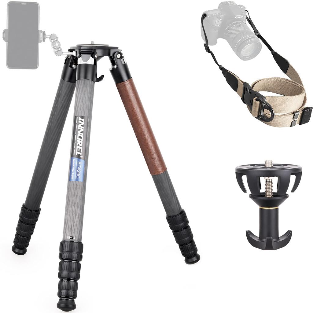 INNOREL Kolfiber Justerbar 42 kg Belastning Fyra Ben med en 75 mm Skåladapter och Mutter för Digital Spegellös Telefoto och Professionell Fågel och Djur