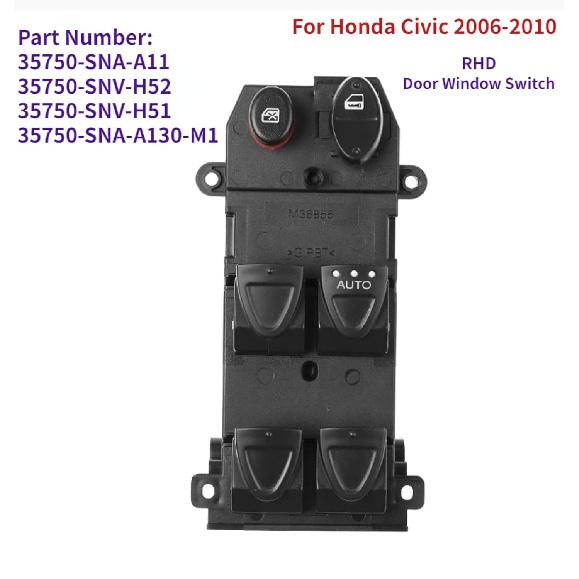Electric Window Switch Push Button Switch Master Front Right Driver Side RHD 22pins for Honda Civic 2006-2010 6.19-4 OEM:35750-SNV-H52 35750-SNV-H51