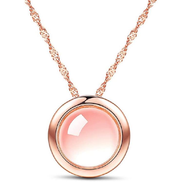 Koguxuix Fashion Jewelry 18k Rose Gold Round Pink Hibiscus Stone Crystal Pendant Necklace for Women