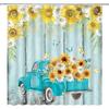 Rustic Sunflower Truck Shower Curtain Yellow Floral Butterfly Teal Wooden Board Antique Car Flower Farmhouse Vintage Country Retro Fabric Bathroom