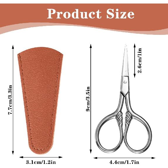 Small Precision Scissors Stainless Steel Facial Grooming Straight Tip Snips Professional Beauty Vintage Eyebrows Clippers Kit with Leather Case for