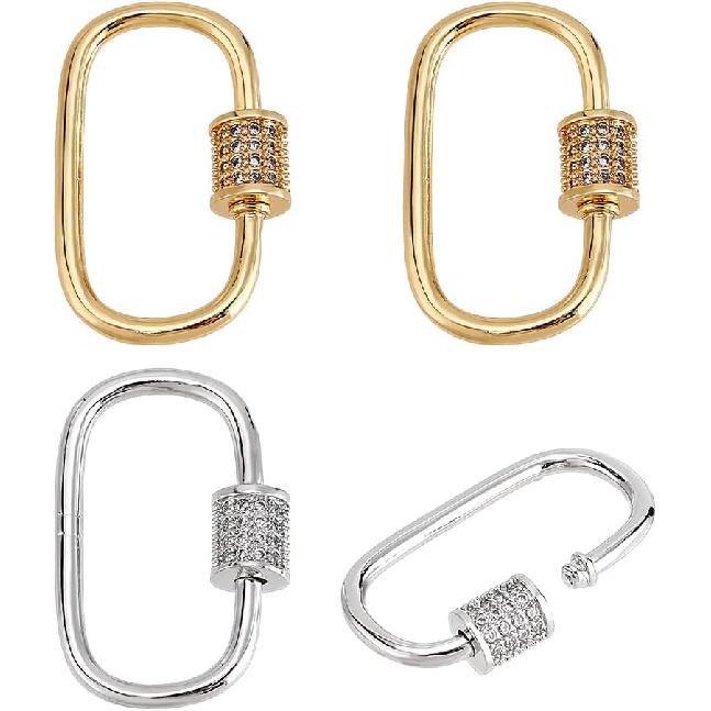 PH PandaHall 2 Colors 4pcs Oval Screw Lock Charms 18K Gold Plated Carabiner Lock Clip Micro Pave Cubic Screw Necklace Link Connector Golden Snap