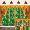 Indian Pooja Traditional Backdrop Diwali Ganpati Ganesh Marigold Puja Photography Background Green Banana Leaves Adult Religious Service Weeding