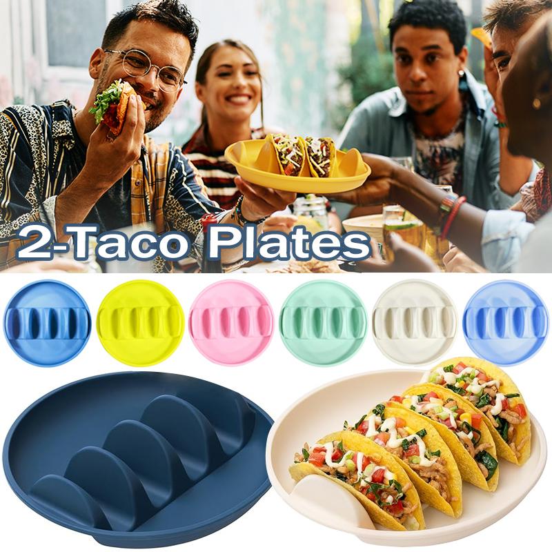 Silicone Taco Serving Tray Set of 2 Multi-Slot Non-Slip Holder for Soft Hard Tacos Dishwasher Safe Kitchen BBQ Versatile Plates