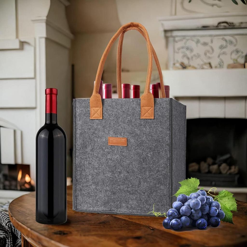 6 Fack Flaskhållare Filt Vinflaskväska Bärbar Filt Likörflaskväska med Handtag för Bröllop Resor Picknick