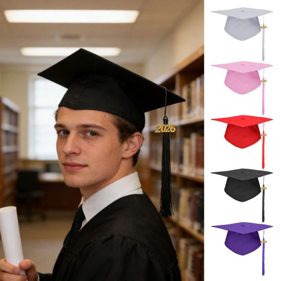 Premium Material: Tillverkad av högkvalitativ matt polyesterfiber och en robust kartong, erbjuder denna examenmössa en mjuk och bekväm känsla samtidigt som den bibehåller hållbarhet.. Det högkvalitativa tyget gör att mössan ser elegant ut och inte billig, vilket gör den perfekt för minnesvärda examensceremonier.