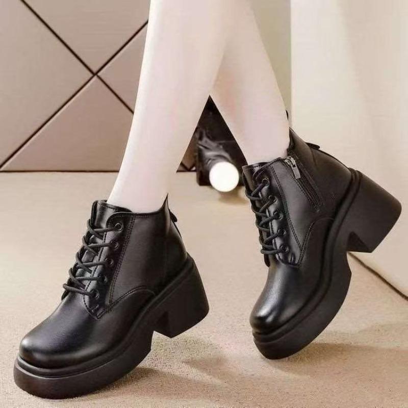 Nya Mjuka Läderskor med Tjock Sula - Lämpliga för Både Höst och Vinter, Mångsidiga Ankelboots för Kvinnor
