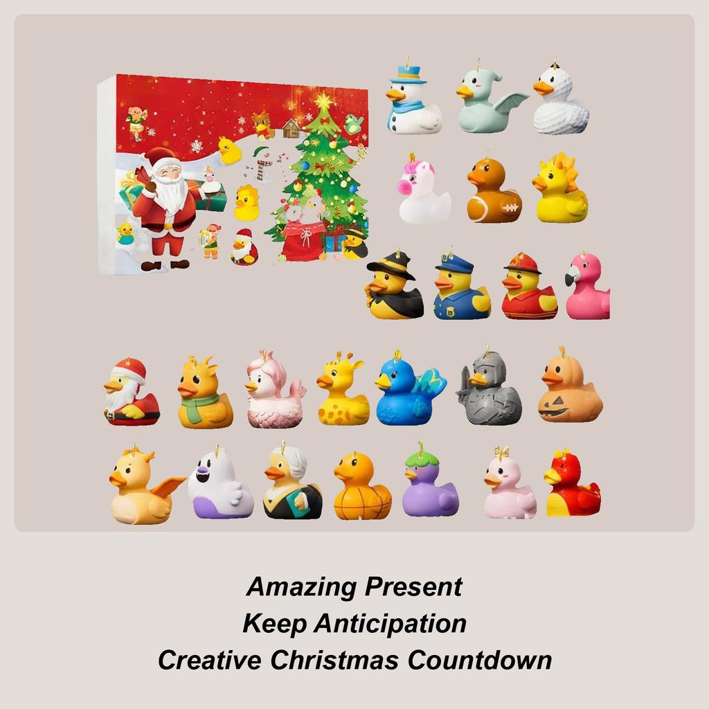 Duck Ornament Advent Christmas Calendar 2D Acrylic Charm Decor 24 Days Duck Countdown Calendar For Home Car Rearview Mirror
