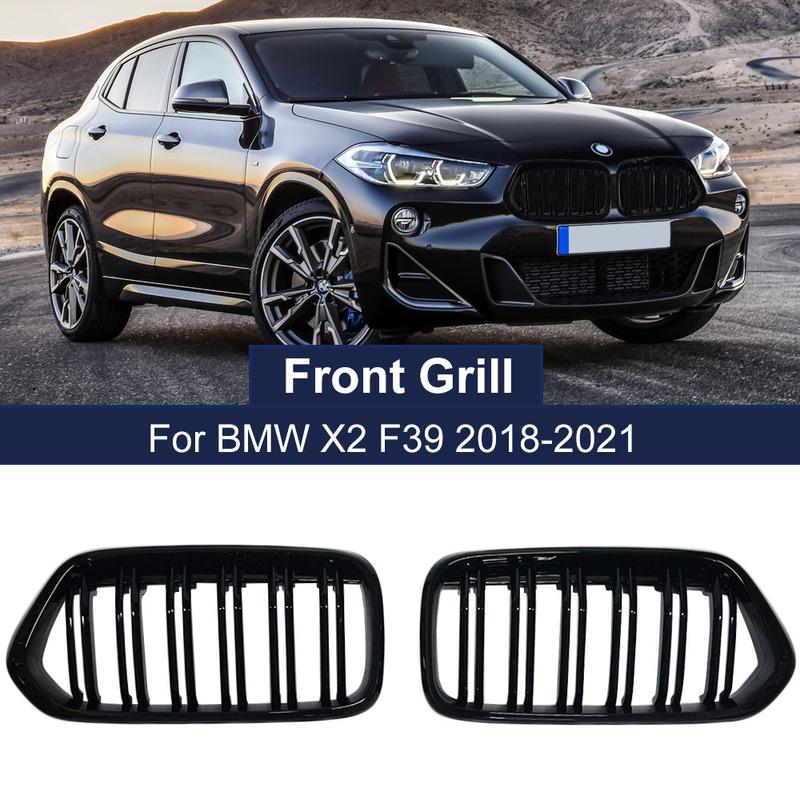 Ett par främre stötfångare njurgrill för BMW X2 F39 2018- Racinggrill Blanksvart ABS Dubbel linje Ersättningstillbehör