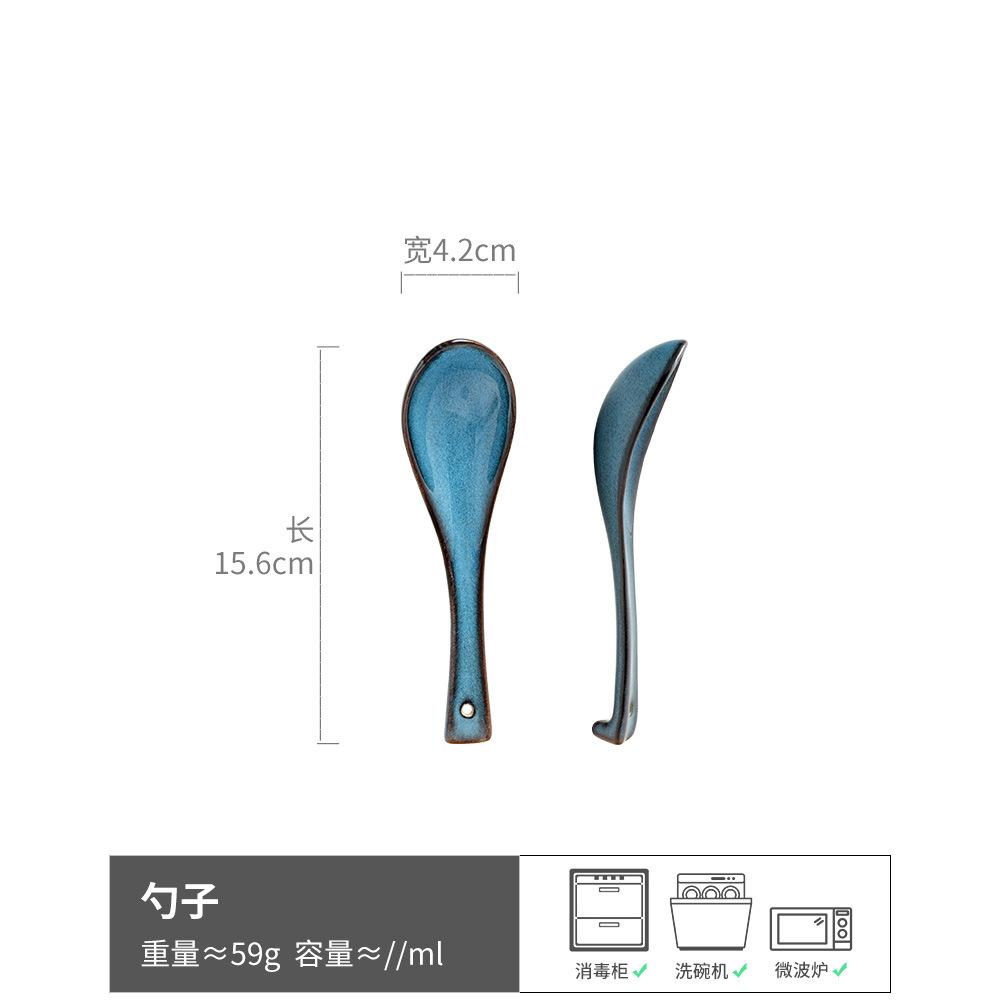 Creative Star Blue Ceramic Spoon Spoon Drinking Spoon Household Small Spoon Tableware Porridge Spoon Dessert Spoon Hotel Dining Spoon