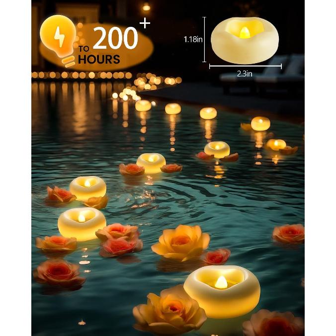 24 x 2”Floating Candle, 200 Hour Water Activated Warm White Battery Powered Flameless LED Floating Candle Floating for