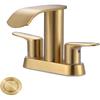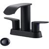 Waterfall Bathroom Faucet 4 Inch Centerset – WOWOW 2 Handle Matte Black Sink Faucet for 2 or 3 Hole Vanity, Modern Stainless Steel Zinc Alloy with