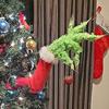 Christmas Elf Body Decorations for Christmas Tree, Thief Stole Furry Green Arm Burlap Pose-able Plush Legs for Xmas Tree Topper (Elf Arm)