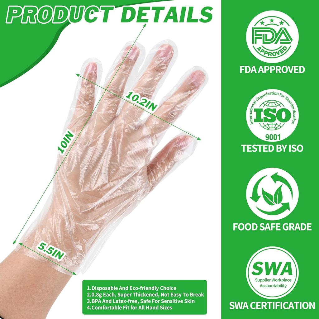 BYMORE Disposable Plastic Gloves Bulk, Clear Food Handling Service Gloves for Kitchen Food Prep Food Service Food Handling