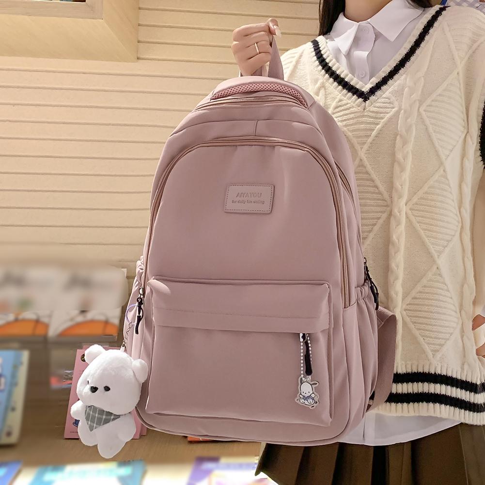 Student Schoolbag Large Capacity College Student Rucksack Nylon with Cute Pendant Simple Adjustable Strap for Outdoor Sport