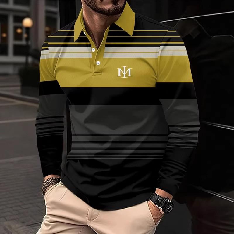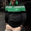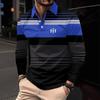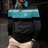 Herrpikétröja, 3D-randigt färgblockstryck, trendig sportig krage, golftröja, herrkläder, långärmad T-shirt, m