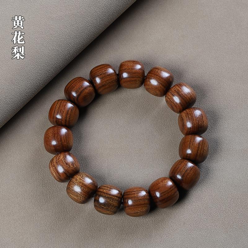 Yellow Pear Wood Barrel Bead Hand String Antique Style Jewelry Buddhist Bead Cultural Bracelet Men's Women's Bangles Accessories