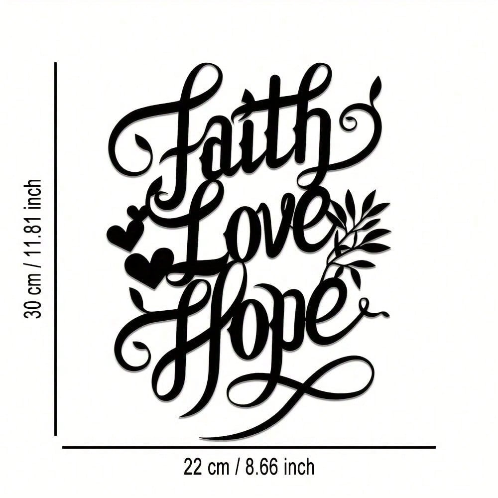 Faith Love Hope Metal Wall Art Black Iron Typography Floral Accent Home Decor Gift