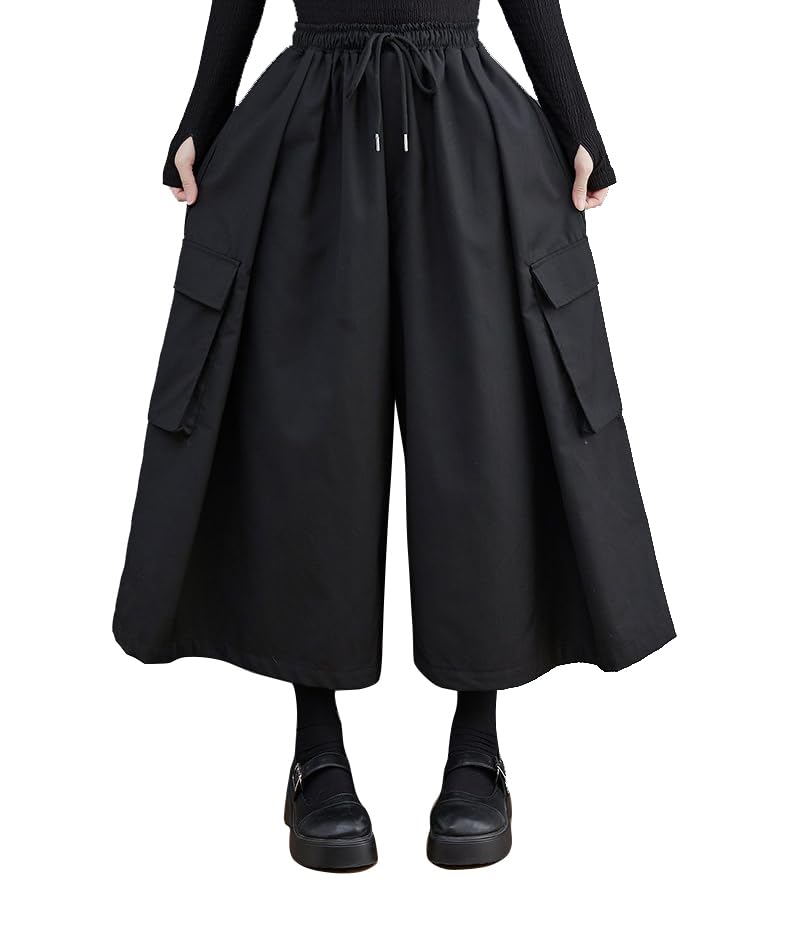 KOXIFLI Hakama Cropped Elastic Plus Winter Women's Wide-Leg Pants, Length, Black, Waist, Sizes, Spring, Autumn, (Size M, Black)