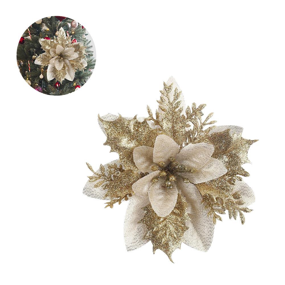 10/20Pcs Christmas Flowers Decor 15cm Glitter Flowers Decors for Christmas New Year Party Supplies