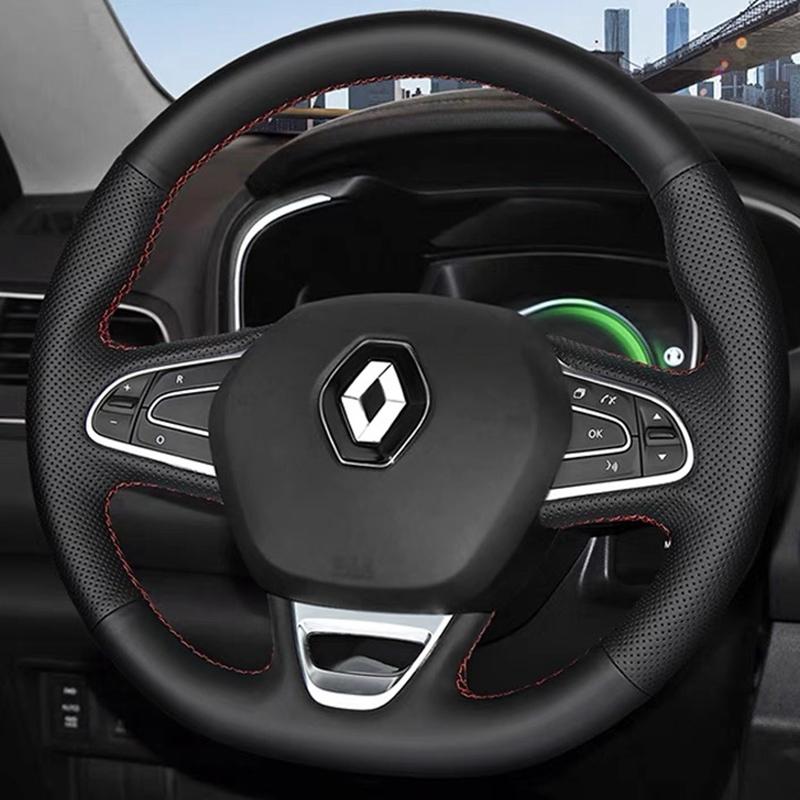 Gör-det-själv Svart Konstläder Handstickade Bilrattöverdrag För Renault Kadjar 2016 2017 Megane 2016 Scenic