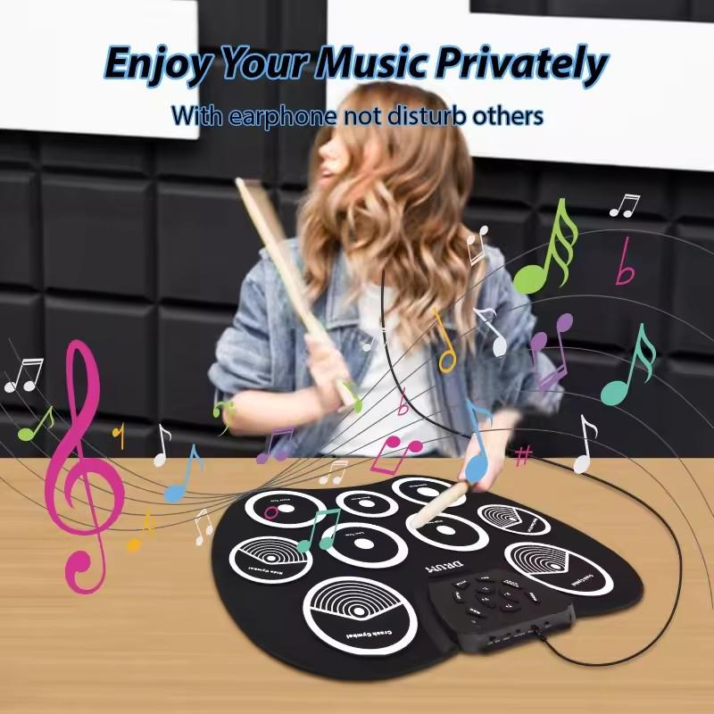 Elektroniskt trumset Handrullad trumma 9-plattor MIDI-gränssnitt Stöder DTX-spel Portabelt trumset Gåvor med trumpinnar pedaler
