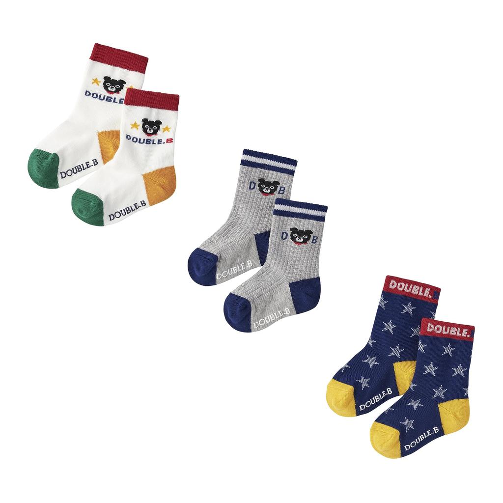 MIKI HOUSE Double B Sock Pack, 3-Pair Crew Length Socks for Boys and Girls, Baby, Kids, School, Sizes 19-21cm, Multicolor, 64-9628-490