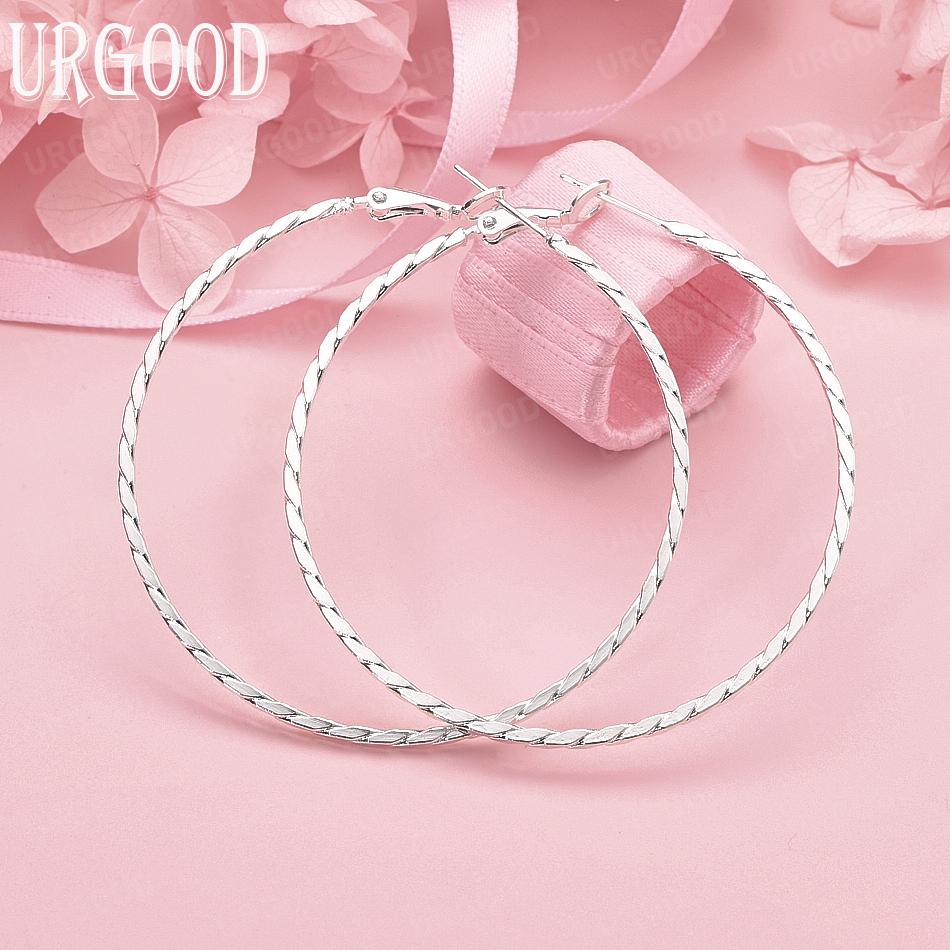 925 Sterling Silver 50mm Circle Pierced Earrings for Weddings and Fashion Jewelry
