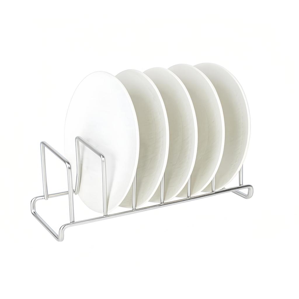 IMEEA Dish Stand, Draining Rack, Stainless Steel, W30.5 x D10 x H12cm, Dish Rack with 6 Compartments, Storage, Dish Drying, Space-Saving, Silver