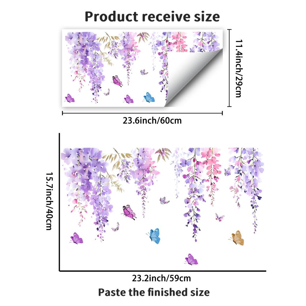 Colorful Pink Purple Wisteria Butterfly Flower Wall Sticker Self Adhesive Decal for Bedroom Living Room Hallway Home Decor