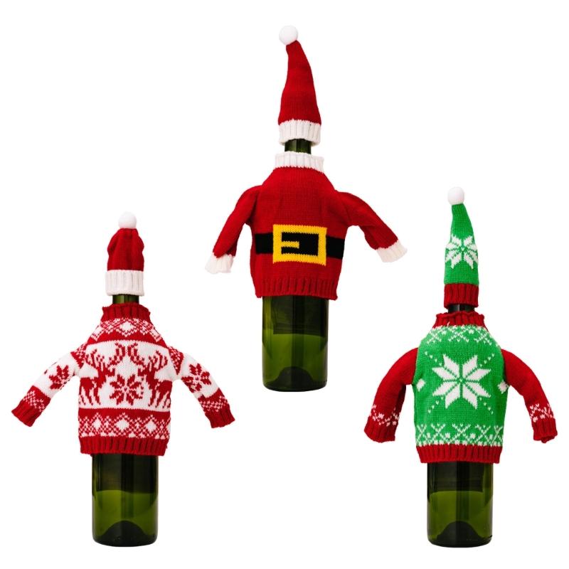 Holiday Wine Bottle Cover Festive Celebrations Woven Bags Party Dinner Decor 6XDE