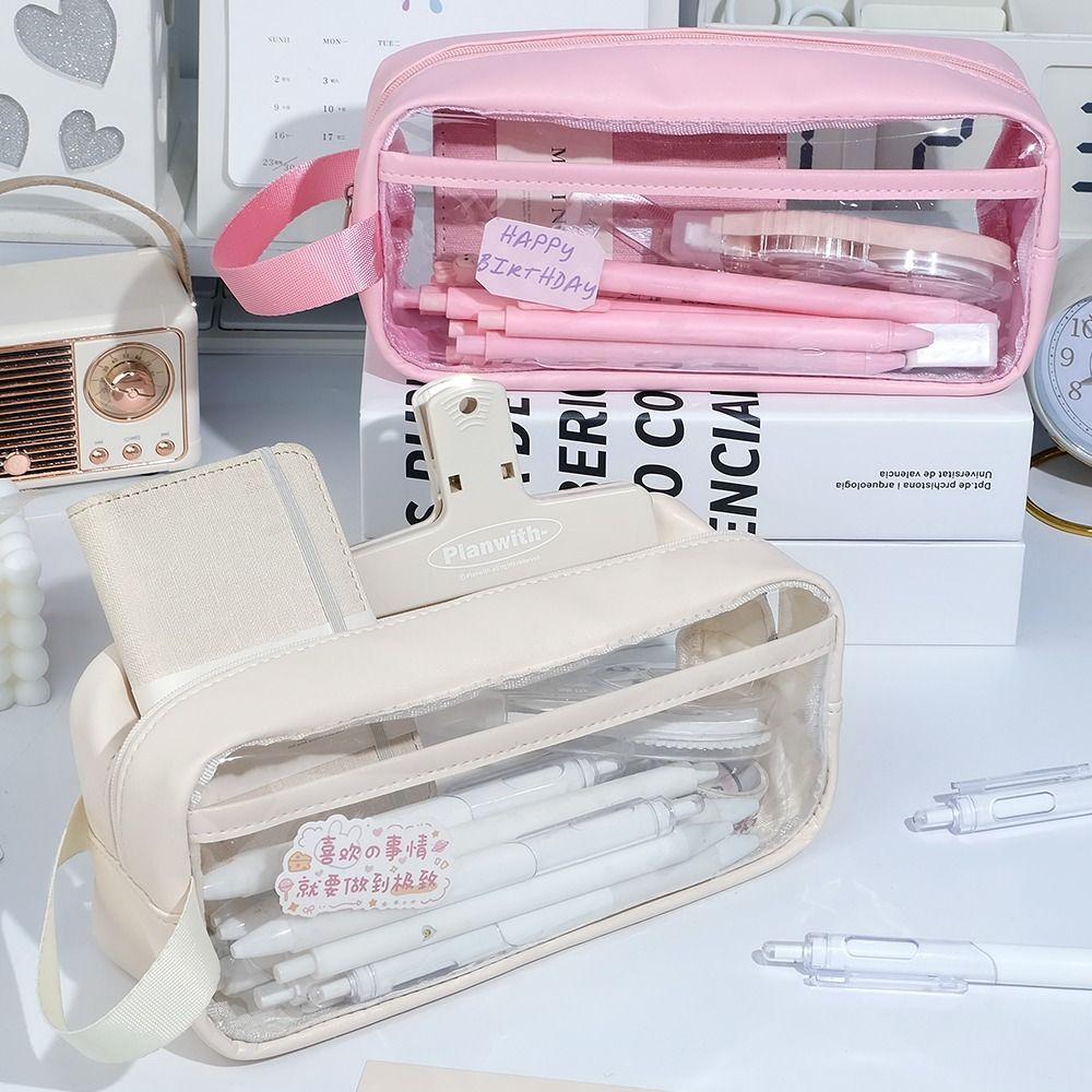 New Transparent Pen Bag Handheld Multi-functional Stationery Bag Large Capacity Pen Pouch Back To School