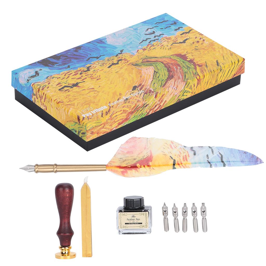Feather Pen Dip Art Calligraphy Retro Vintage Quill Gift Box Kit with Lacquer Stamp Tool