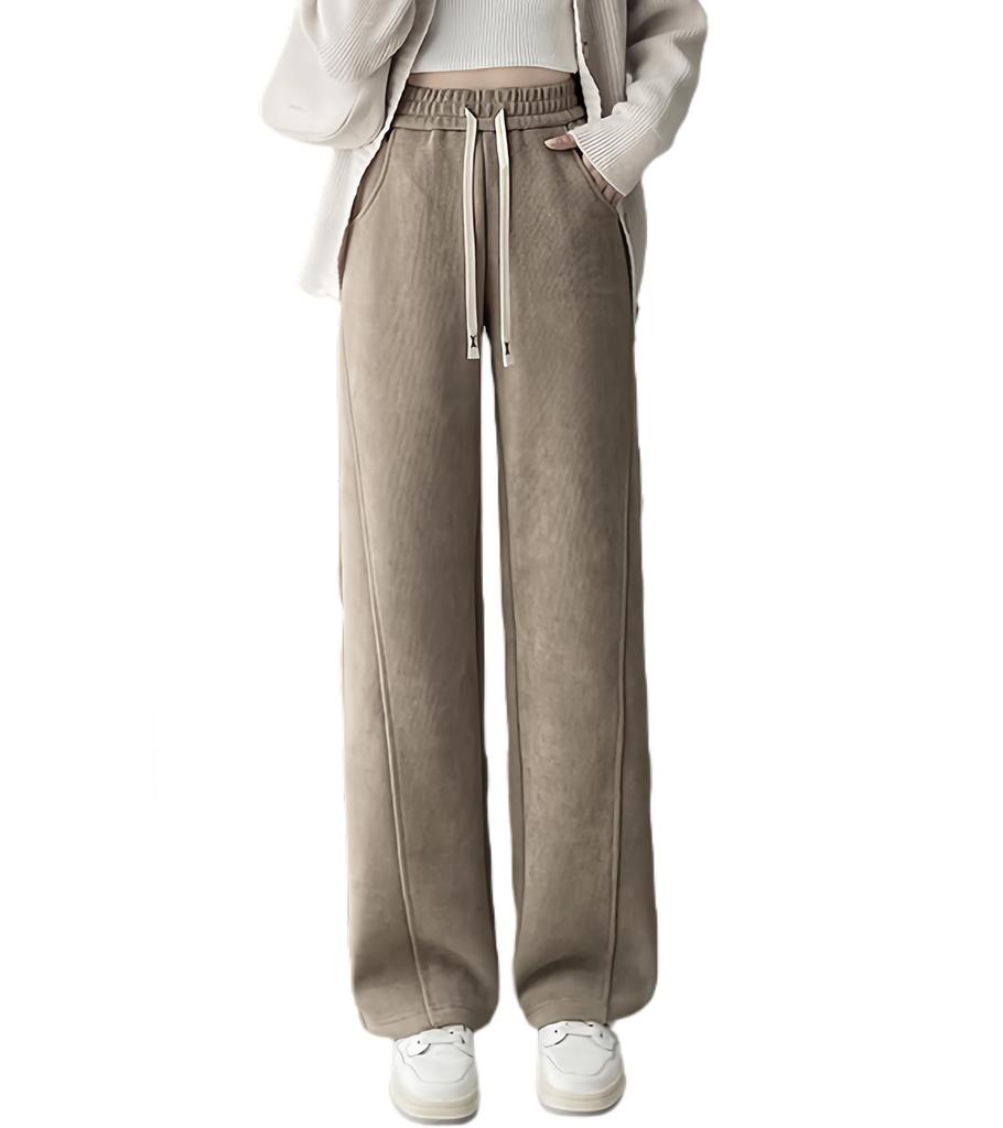 Ribbed Elastic Waist Casual Sizes [DAY CLOTHDaycloth] Women's Fleece-Lined Wide-Leg Pants, M-2XL, Fall/Winter (JP, Alphabet, M, Khaki)