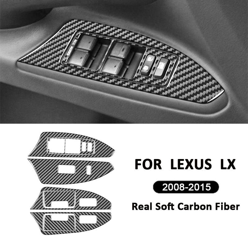 För Lexus LX 2008-2015 Tillbehör Kolfiber Auto Elhissknappar Panelram Dekoration Interiörklistermärke