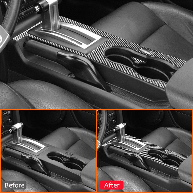 For Ford Mustang 2005-2009 Parts Carbon Fiber Auto Central Control Gear Shifter Water Cup Holder Panel Frame Decoration Sticker