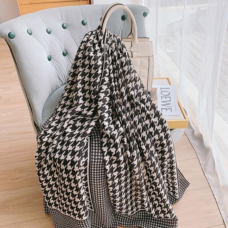 1 pcs 90x180Korean version of cotton and linen women's scarf long thousand bird check silk scarf warm outside with a scarf shawl