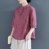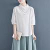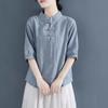 Cotton and Linen Loose T-shirt Retro Mid-sleeved Shirt Women's Chinese Style Tea Service Loose Pullover