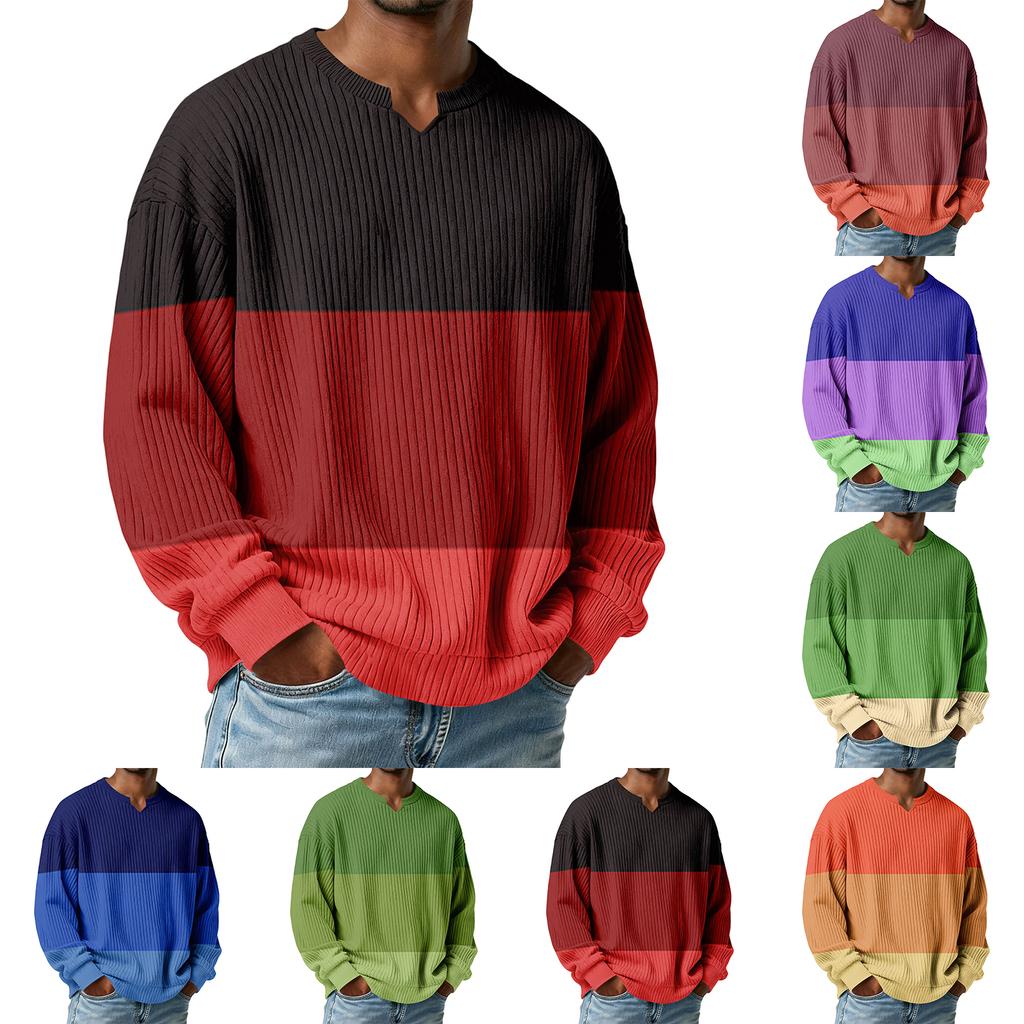 Herrars Färgblockerad Stilfull V-ringad Ribbad Texturerad Långärmad T-shirt