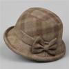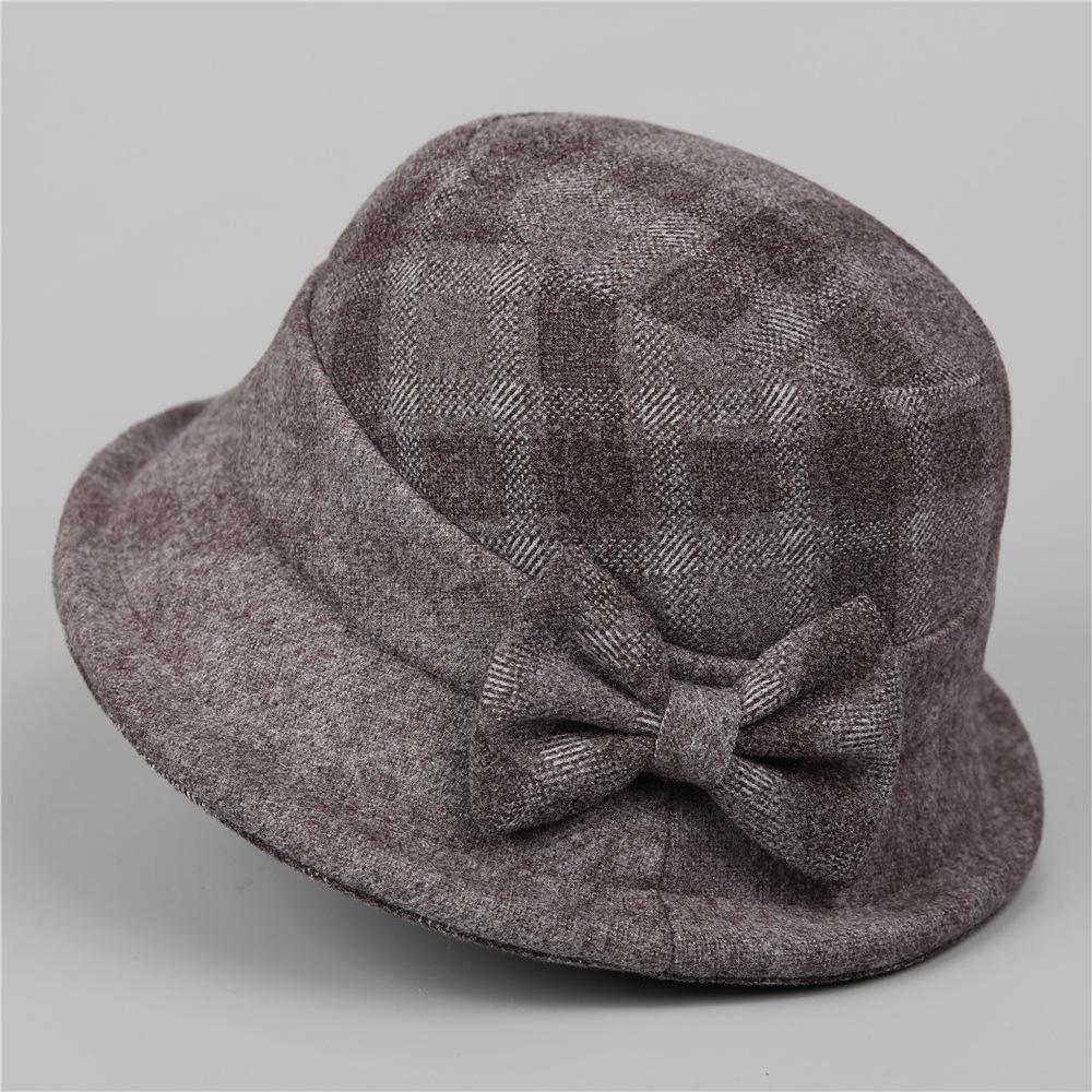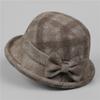 Middle-Aged Old Man Season Elegant Bow Mom Hat Female Thickened Woolen Basin Hat Grandma Plaid Bucket Hat